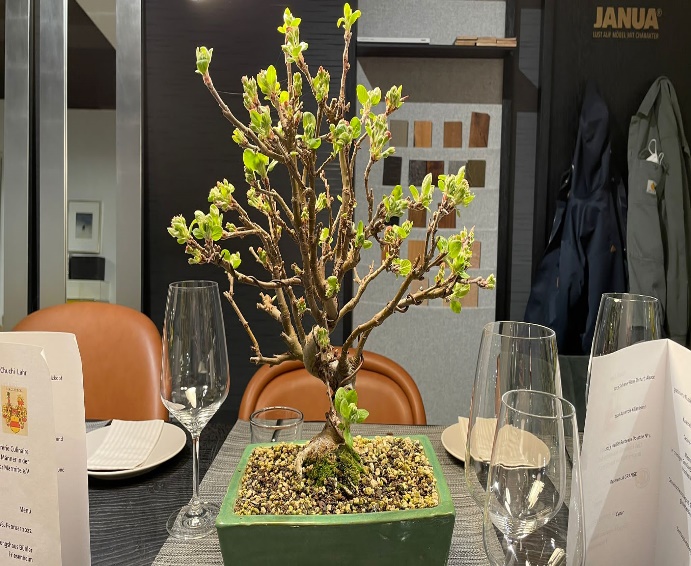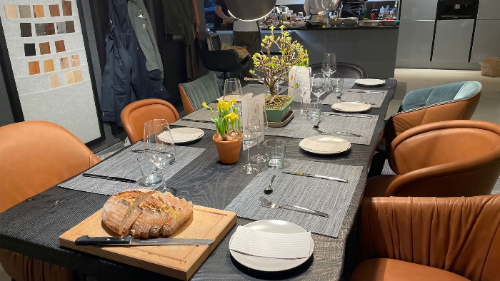 Der schwere Eichentisch trug mit Leichtigkeit den Bonsai-Apfelbaum von Andy. Heute war auch ein köstliches Sauerteigbrot und Baguette angerichtet.