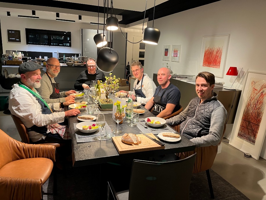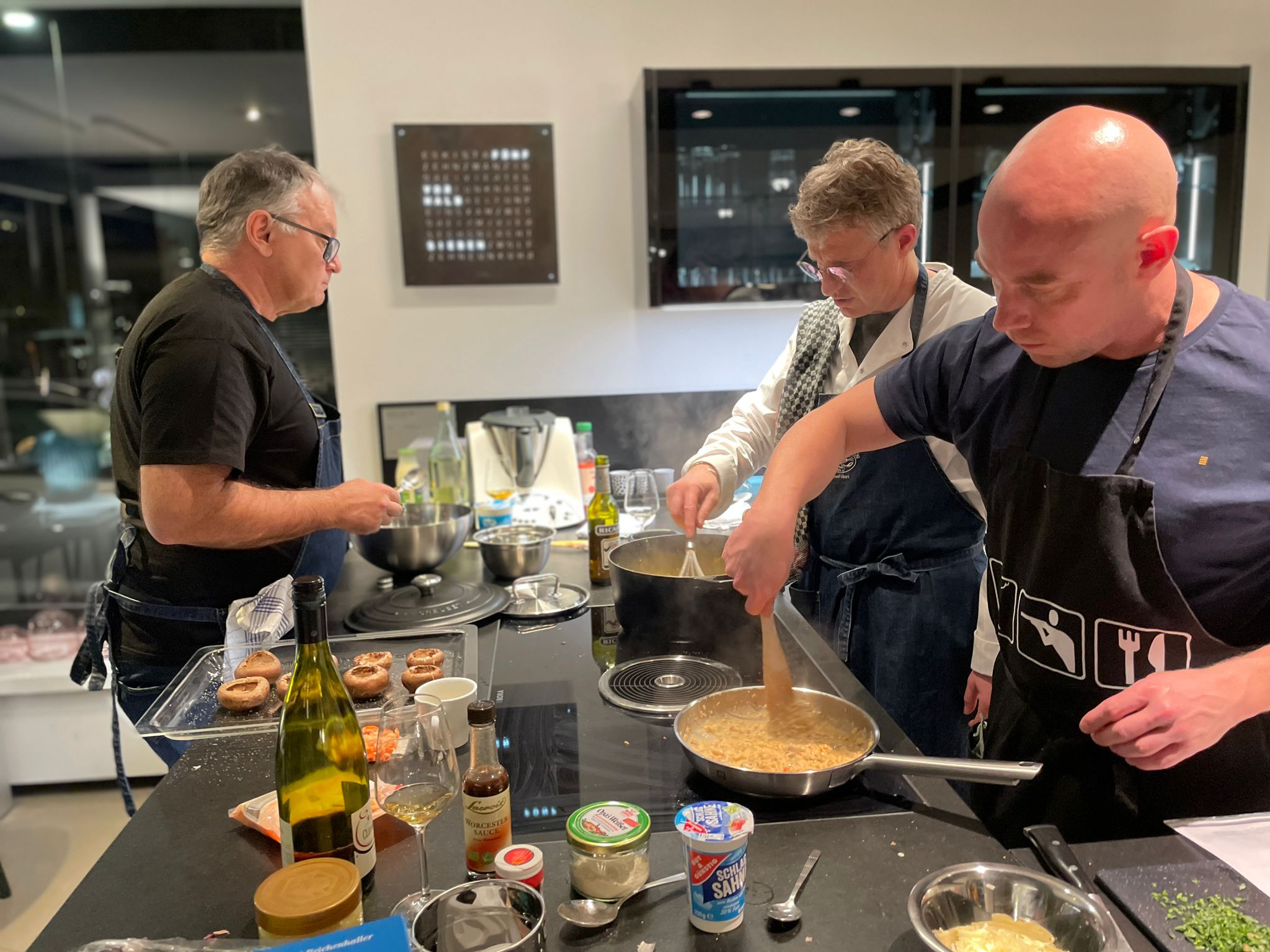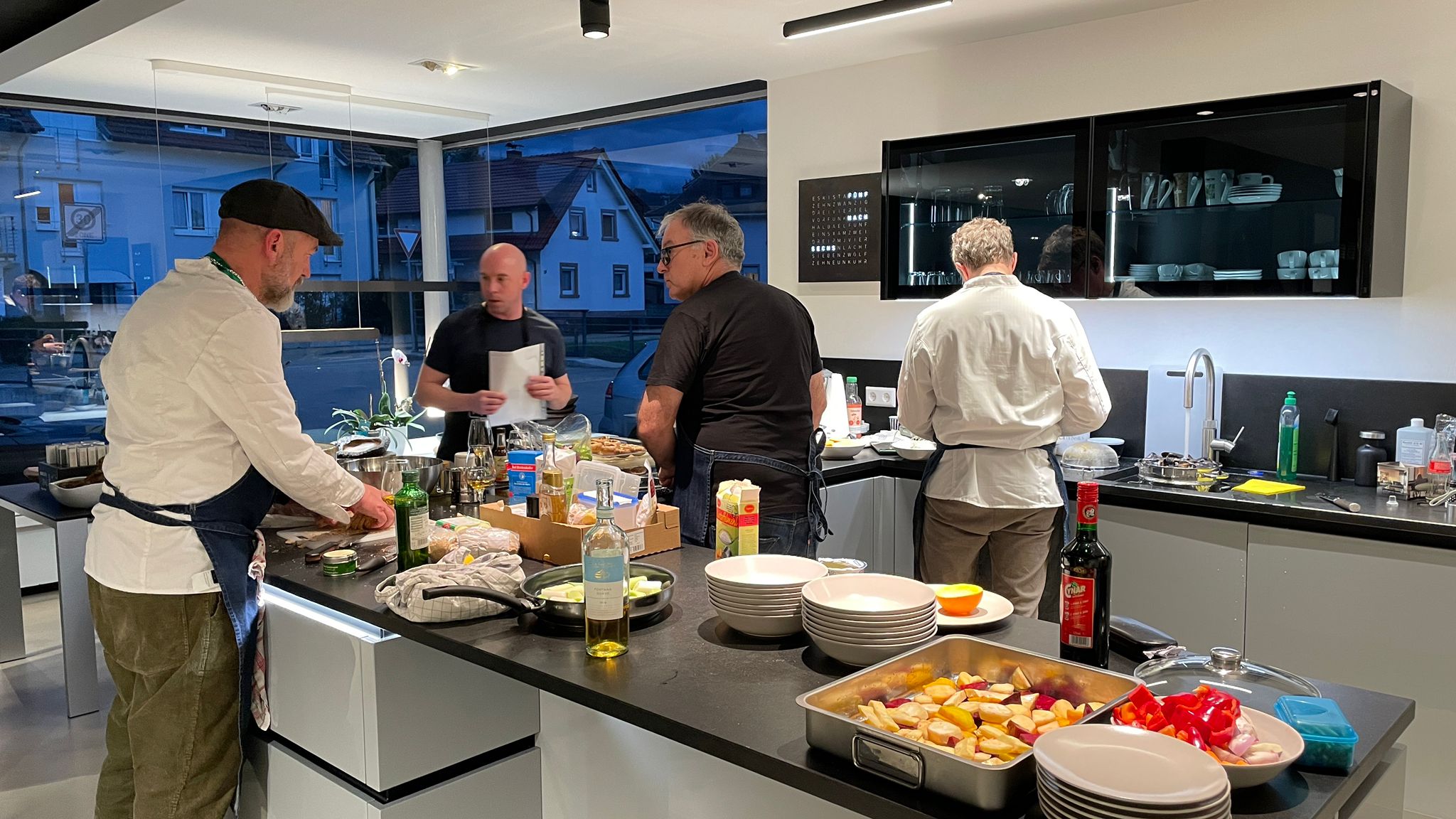 Wir kochen wieder in der Schaufensterebene. Die Aufgaben waren verteilt worden und wir Kochbrüder konnten pünktlich ab 17:00 Uhr loslegen.