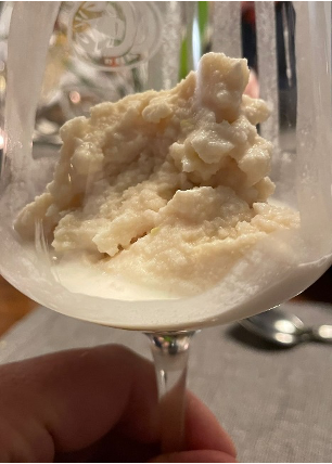 Bei einer kleinen Unterbrechung vor dem Hauptgang wurde Zitronensorbet serviert, natürlich selbst gemacht.